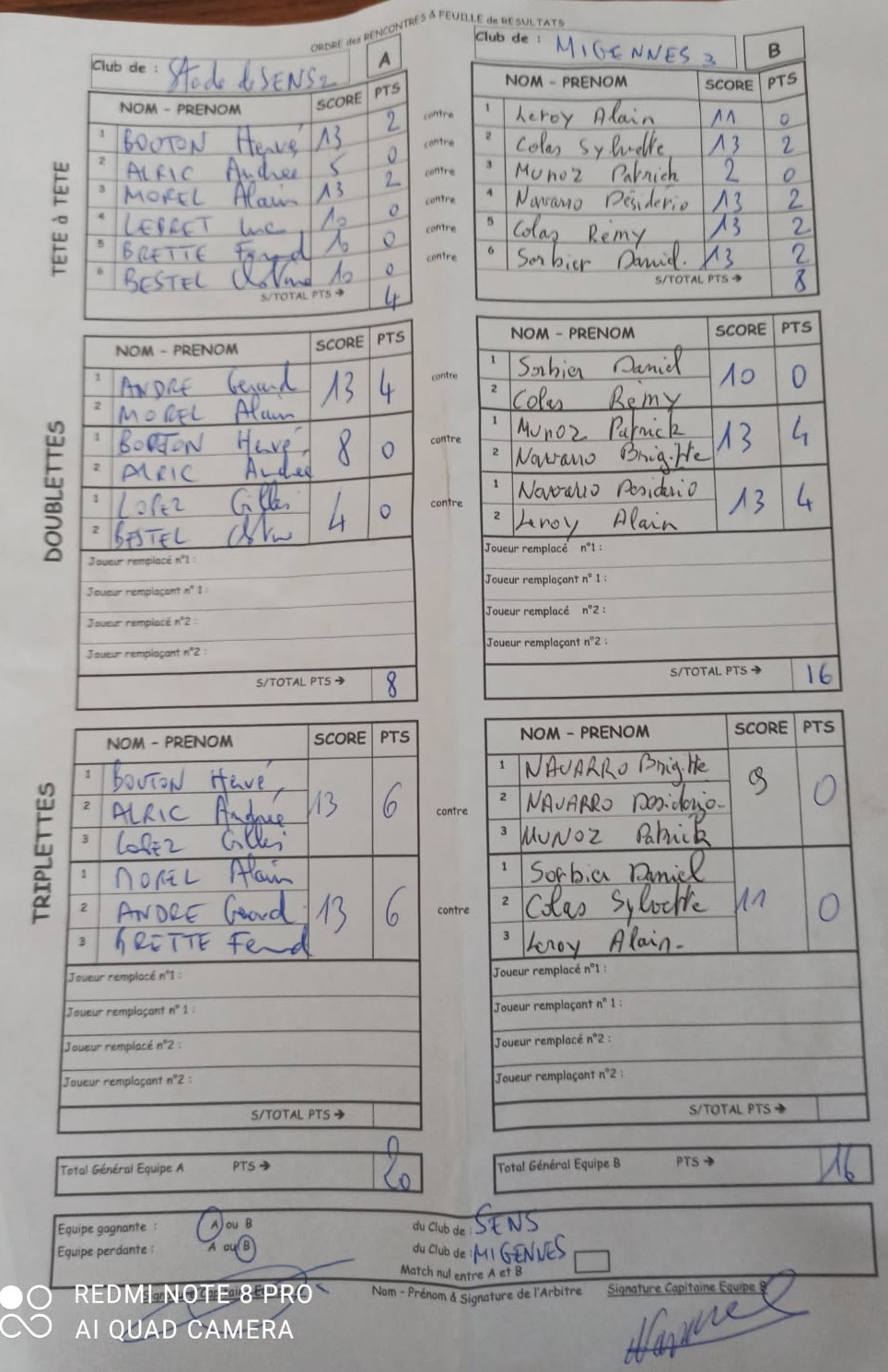 Feuille de Match MIGENNES 3 - D3 Gr A - Journée 1
